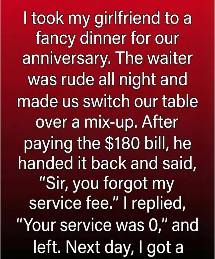 I had spent weeks planning a special evening, saving up and choosing an elegant restaurant known for its quiet intimacy