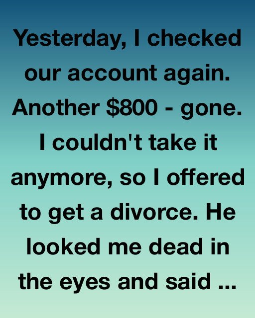 Yesterday, I checked our account again. Another $800 – gone. I couldn’t take it anymore, so I offered to get