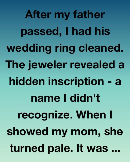 After my father passed, I had his wedding ring cleaned. The jeweler revealed a hidden inscription—a name I didn’t recognize.