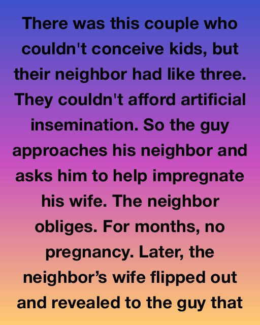 There was this couple who couldn’t conceive kids, but their neighbor had like three. Martha and Simon had tried everything
