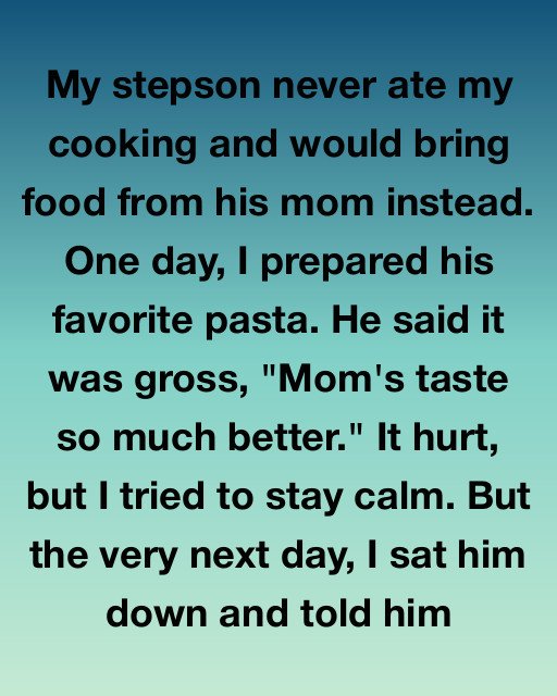 My stepson never ate my cooking and would bring food from his mom instead. One day, I prepared his favorite