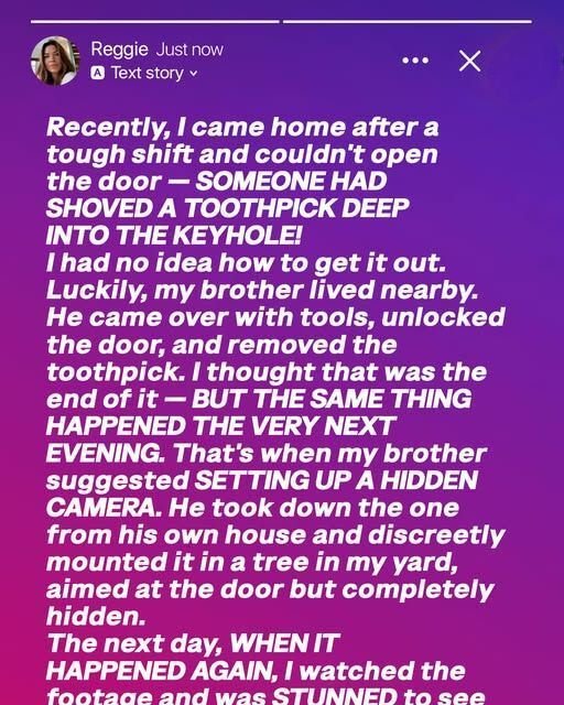 One night after work, I came home to find a toothpick jammed into my door lock. My brother helped fix