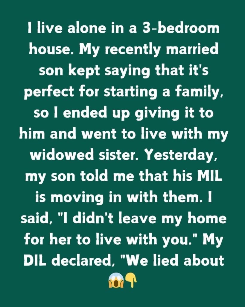 I gave my recently married son, Darien, my 3-bedroom house so he could “start a family,” and I moved in