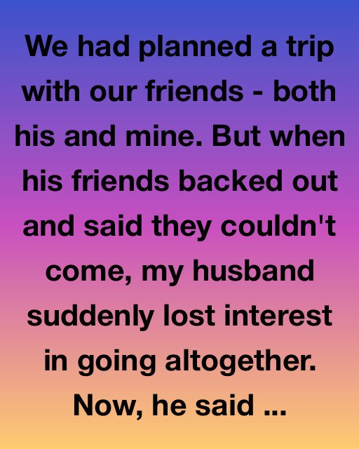 We had planned a trip with our friends—both his and mine. But when his friends backed out and said they