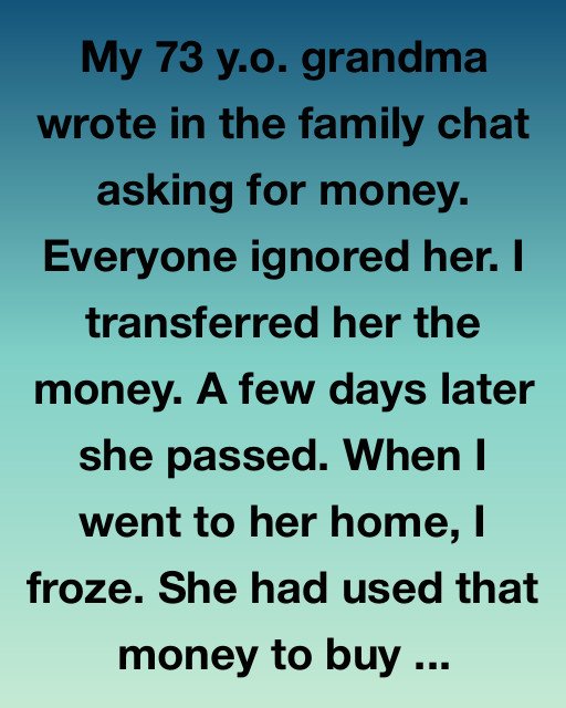 My 73 y.o. grandma wrote in the family chat asking for money. Everyone ignored her. I transferred her the money.