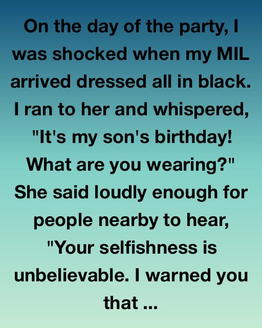 On the day of the party, I was shocked when my MIL arrived dressed all in black. I ran to